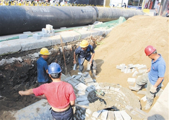 工程部副經(jīng)理鄒艷忠告訴記者,為早日還路于民,提升供水能力,西關(guān)到北京路、北京路到中山路、中山路到民權(quán)路口三個(gè)工作面都在同時(shí)施工,夜晚加班到十一二點(diǎn)更是常事。在怡和摩爾城前的施工現(xiàn)場(chǎng),干燥的路面在車輛通過(guò)后,揚(yáng)起陣陣灰塵,挖開(kāi)的溝渠內(nèi)全是泥濘,本以為借助機(jī)器進(jìn)行的管道碰接會(huì)相對(duì)容易,但誰(shuí)知道在長(zhǎng)長(zhǎng)的管道里卻藏著一個(gè)人!肮艿琅鼋右蟮氖菄(yán)絲合縫,光靠機(jī)器做不到這么精細(xì),還需要人在管道里查看指引!惫こ滩堪惭b三隊(duì)隊(duì)長(zhǎng)涂云輝說(shuō),從爬進(jìn)管道,再到中間的調(diào)試,一路下來(lái),爬出管道時(shí)經(jīng)常是滿臉通紅了。“但只要居民們用水順暢,我們的付出也算得到了回報(bào)。”涂云輝說(shuō)道。